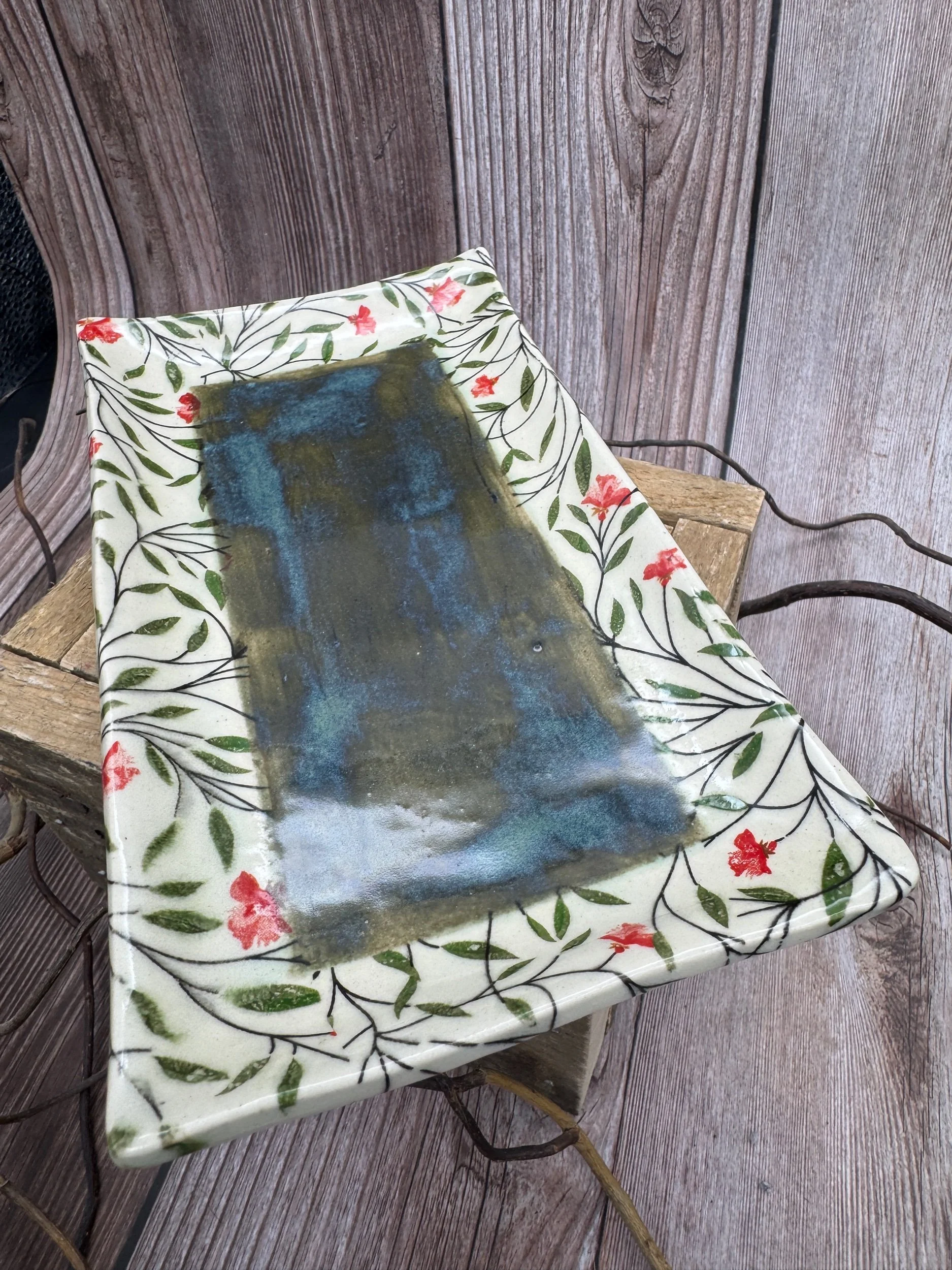 Store › Red Flower Tray Red Flower Tray $23.00 This beautiful 8.5 x 4.5 tray has both a red floral pattern and a blue/green glaze to the center. This beautiful 8.5 x 4.5 tray has both a red floral pattern and a blue/green glaze to the center. Add To Cart Added!