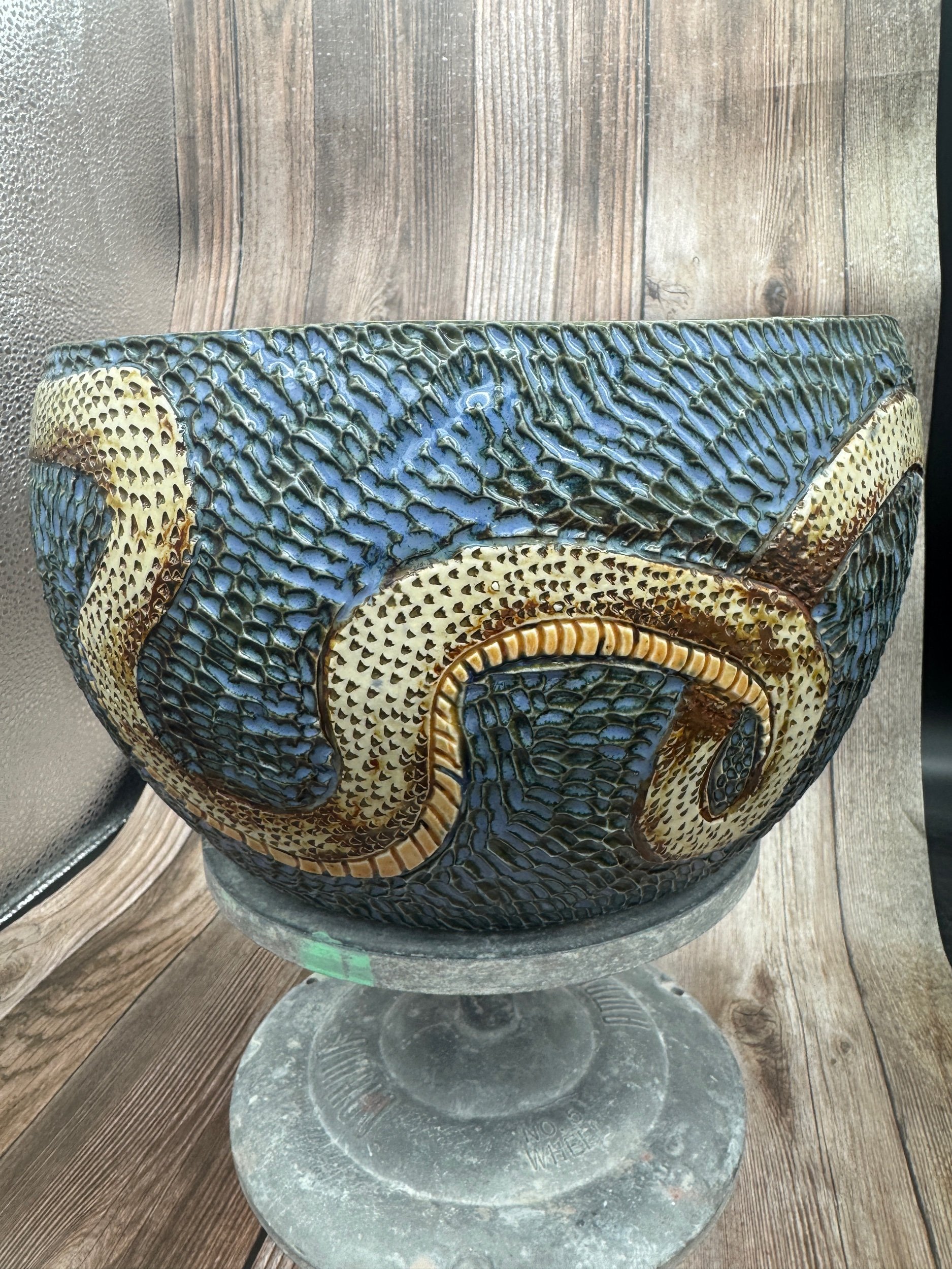 This amazing Snake bowl was hand carved on a wheel thrown Bowl. I love the fluid body movement along the side. Can be a planter 🤗
