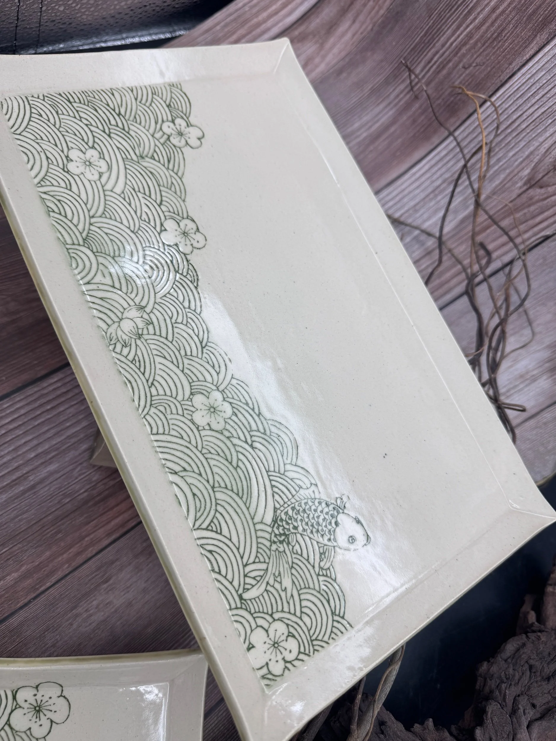 Store › Large Asian Green Fish Tray Large Asian Green Fish Tray $40.00 The large size matches two others nesting. This large beautiful fish dish measures 12 by 7 in. The large size matches two others nesting. This large beautiful fish dish measures 12 by 7 in. Add To Cart Added!