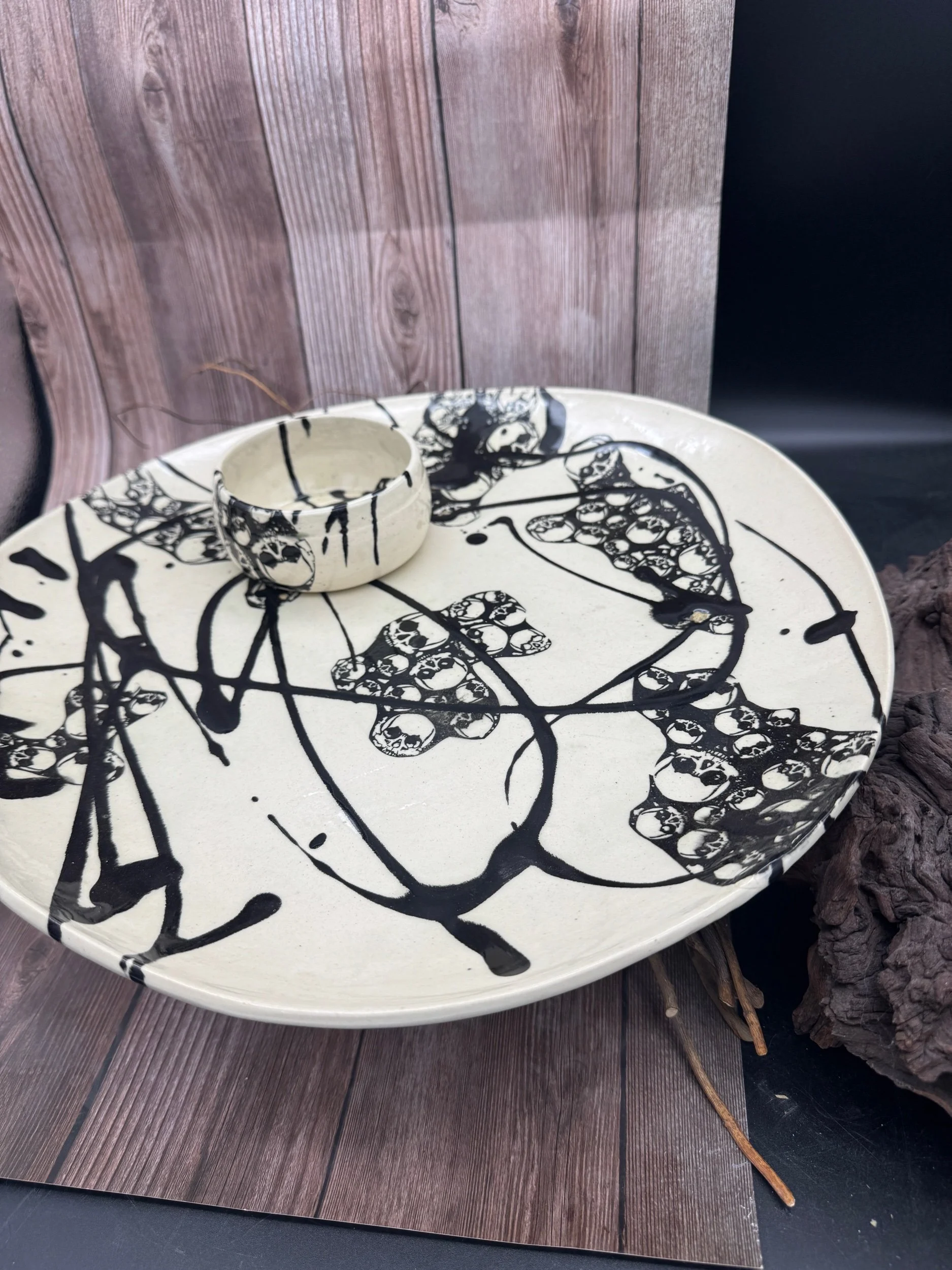 Store › Large Skull Tray Set Large Skull Tray Set $85.00 This gorgeous skull tray set measures approximately 14 in across and has a dipping bowl :) This gorgeous skull tray set measures approximately 14 in across and has a dipping bowl :) Add To Cart Added!
